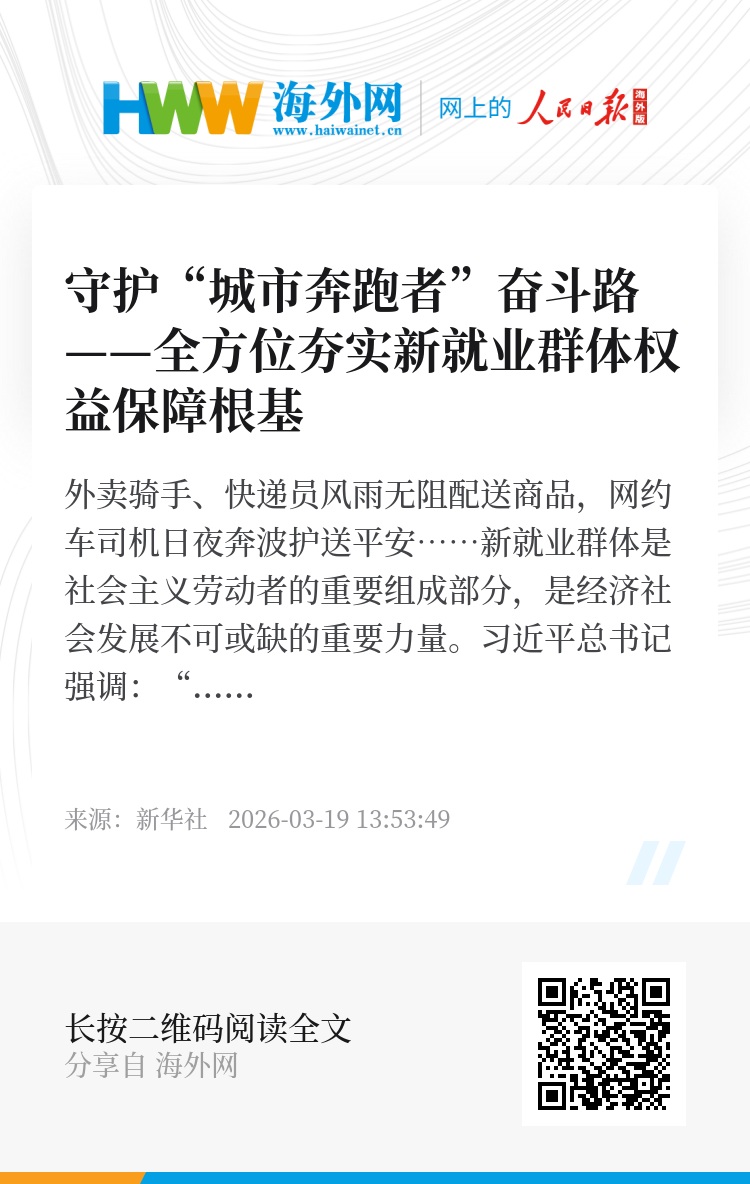 站在新的起点上,更足的关怀、更实的保障,将助力新就业群体安心奔跑、放心逐梦,也将为经济社会高质量发展进一步筑牢民生根基、凝聚奋进合力。