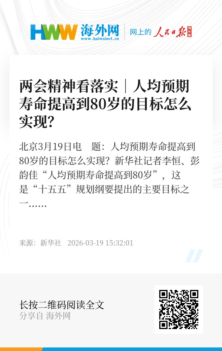 新华社北京3月19日电 题:人均预期寿命提高到80岁的目标怎么实现?