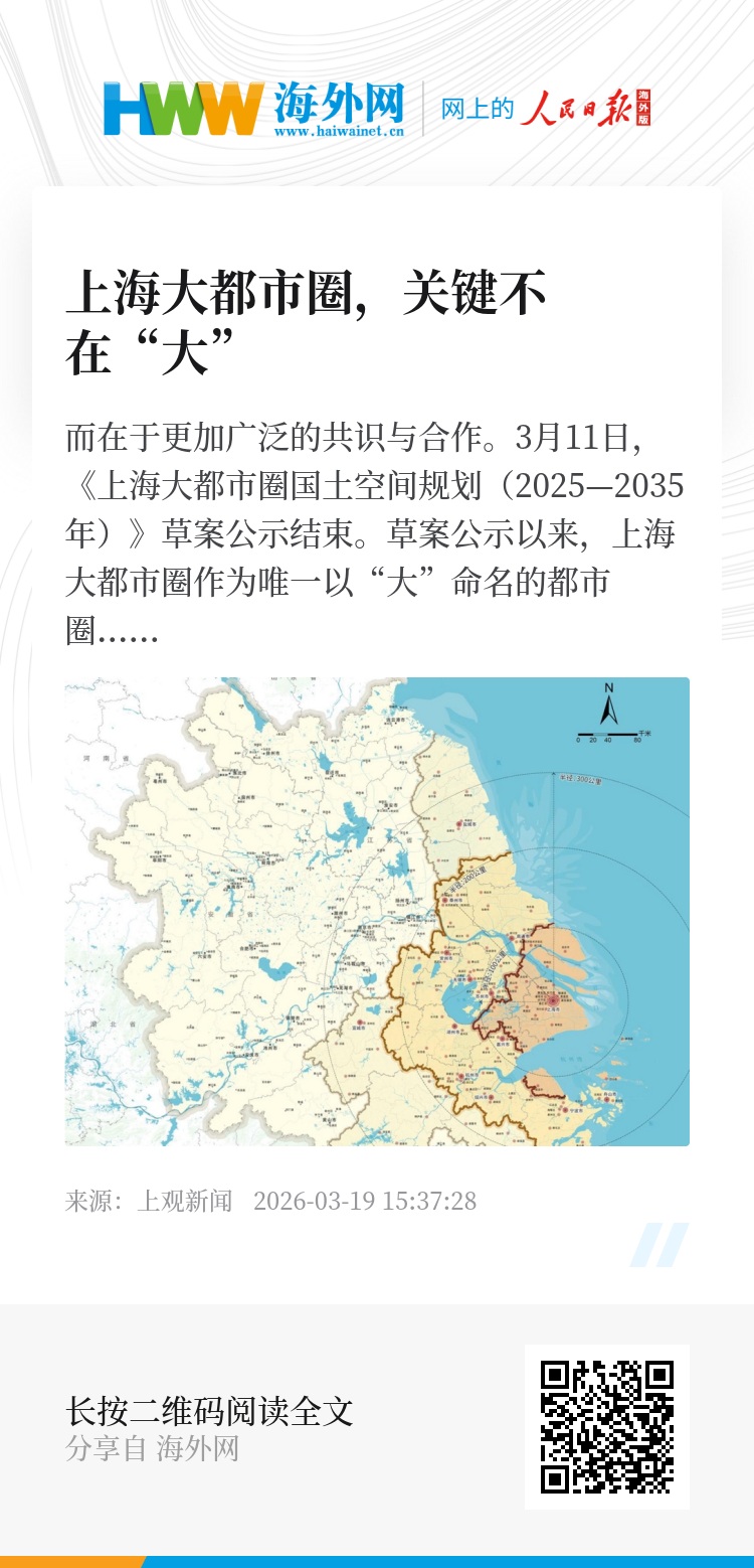 3月11日,《上海大都市圈国土空间规划(2025—2035年)》草案公示结束。