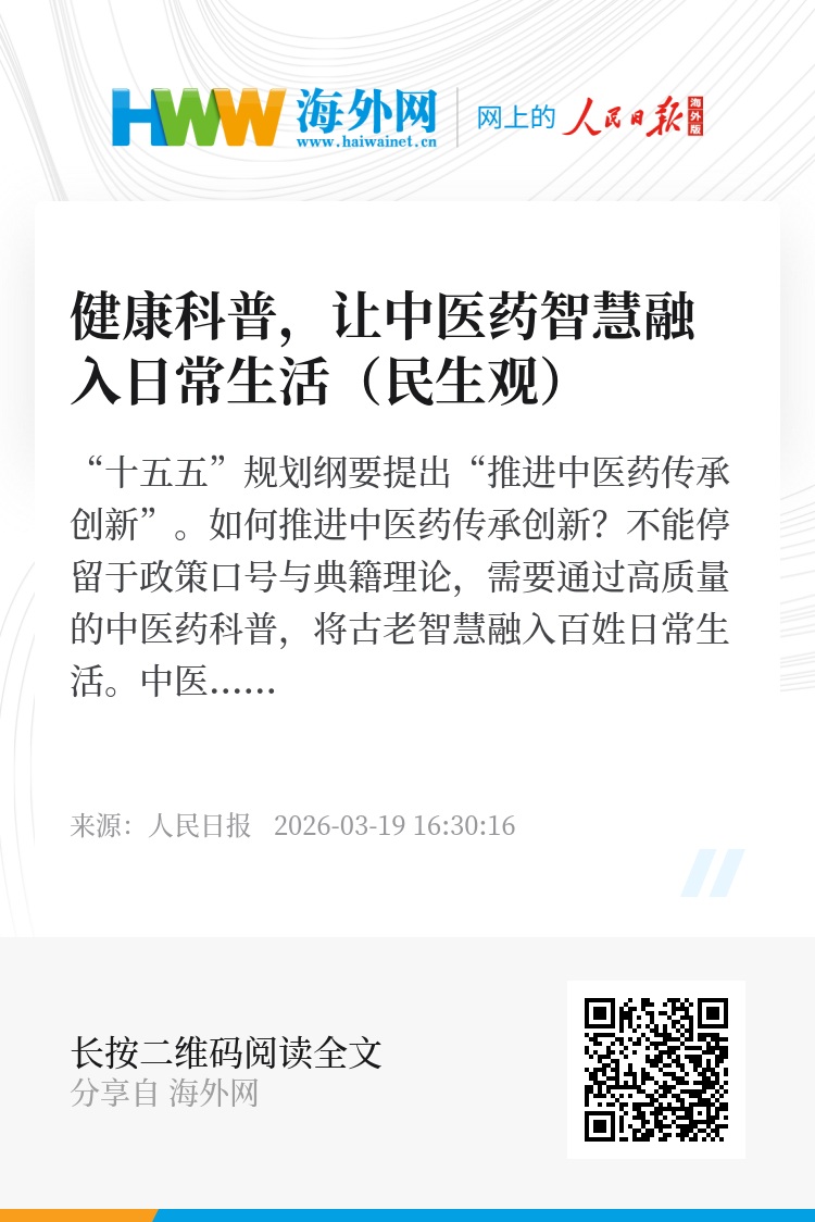“十五五”规划纲要提出“推进中医药传承创新”。如何推进中医药传承创新?不能停留于政策口号与典籍理论,需要通过高质量的中医药科普,将古老智慧融入百姓日常生活。