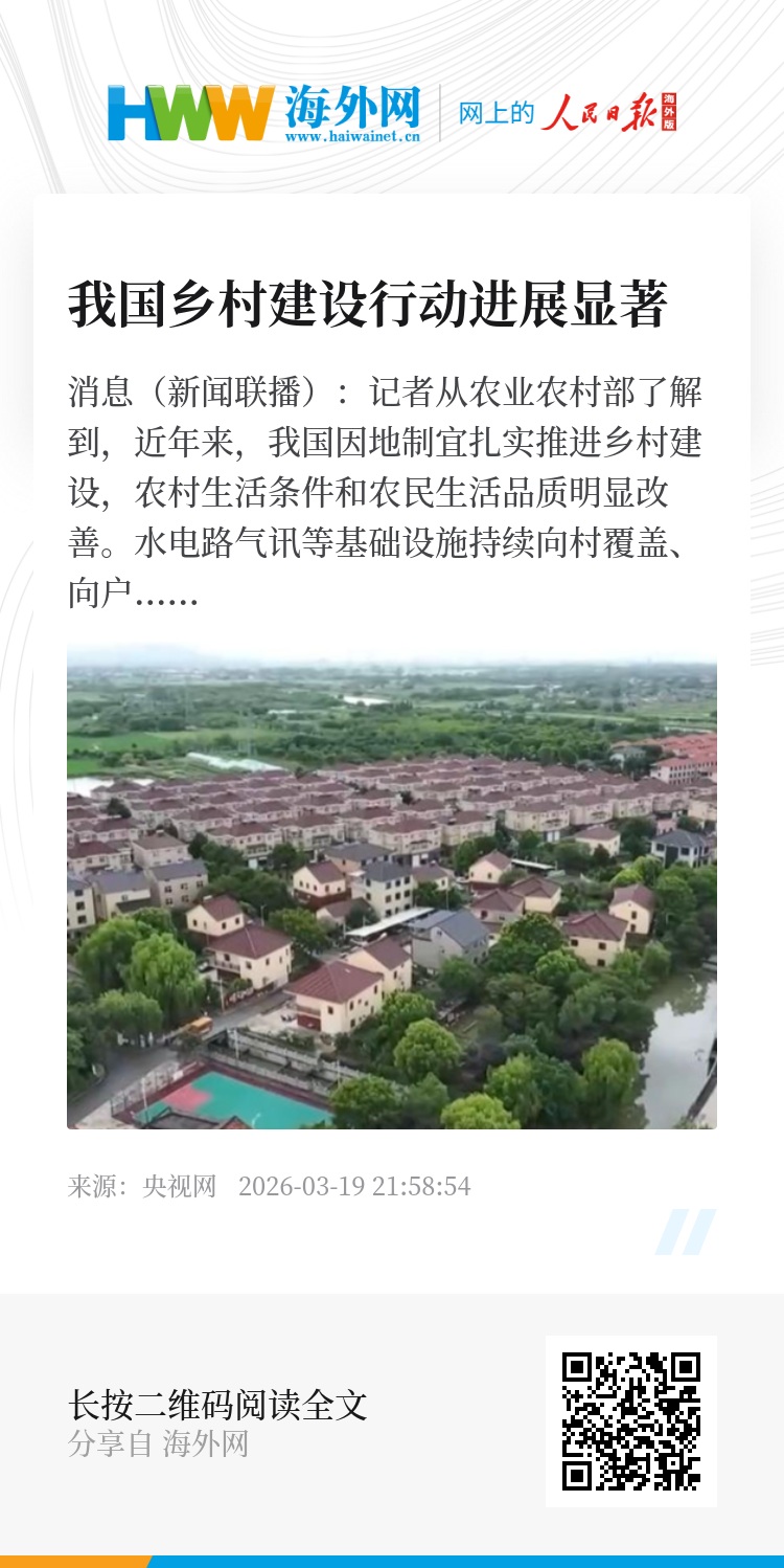 央视网消息(新闻联播):记者从农业农村部了解到,近年来,我国因地制宜扎实推进乡村建设,农村生活条件和农民生活品质明显改善。