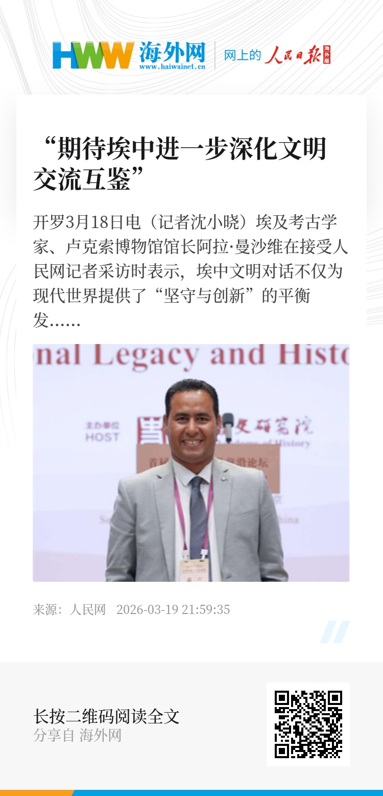 2026年是“中非人文交流年”,曼沙维表示,这为进一步深化中非、中埃人文交流提供了重要契机,也将助推全球南方发展。“期待埃中进一步深化文明交流互鉴,在考古、教育、科技、旅游等领域加强务实合作,促进双方优势互补,携手推进现代化。”曼沙维说。