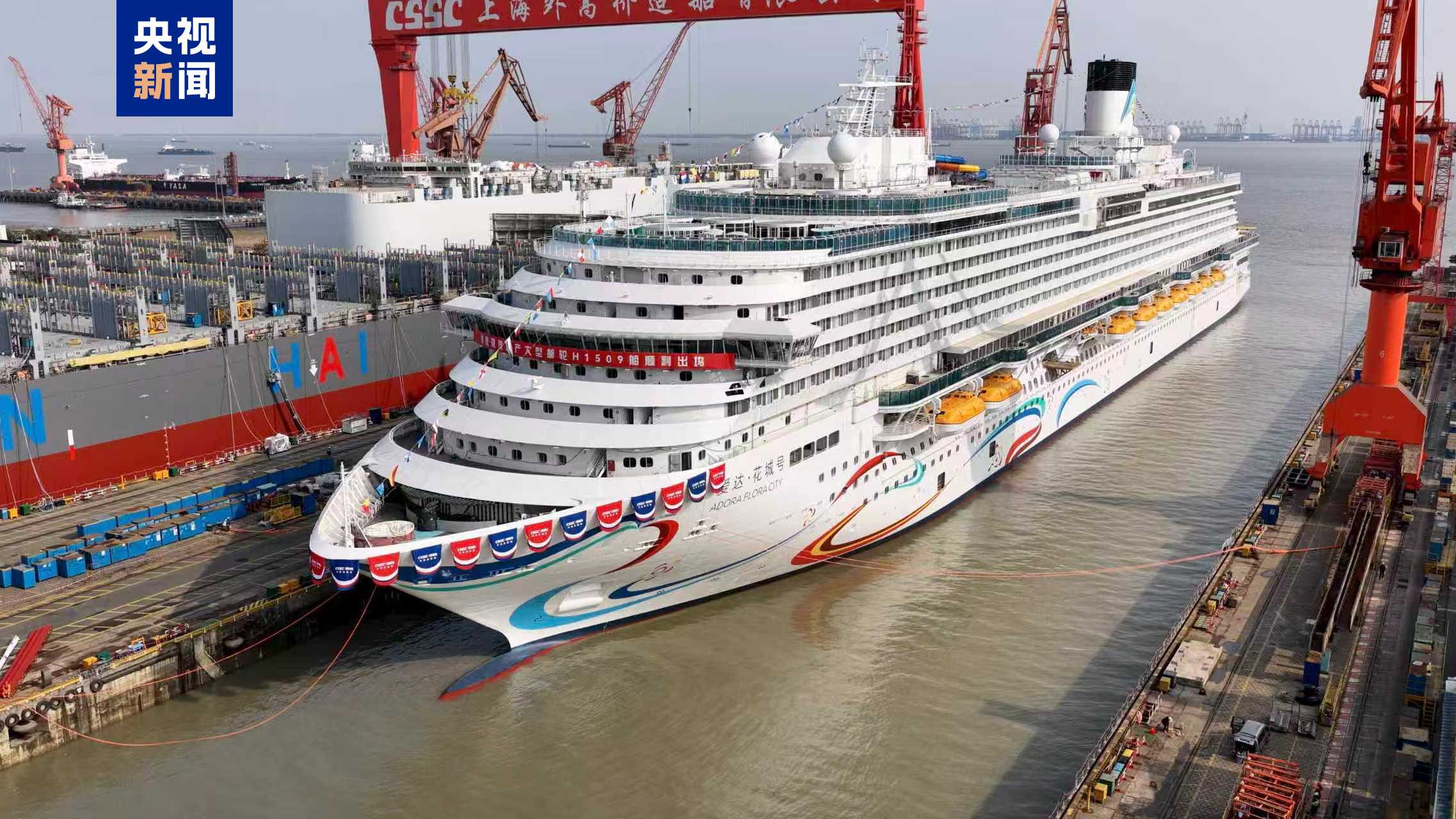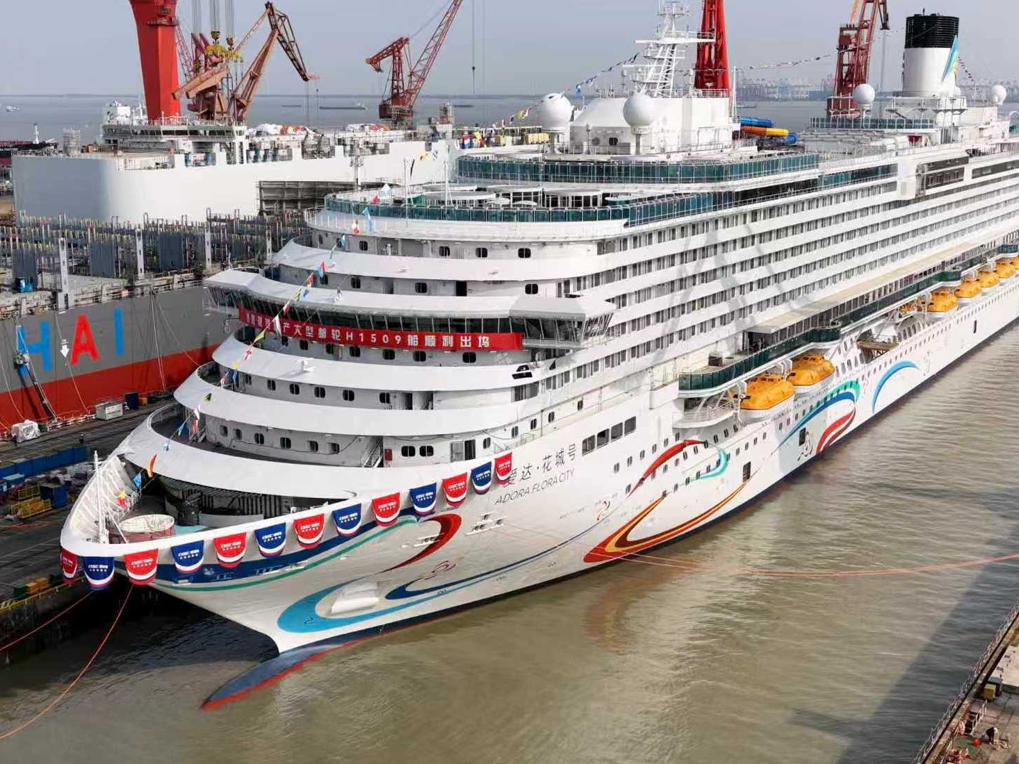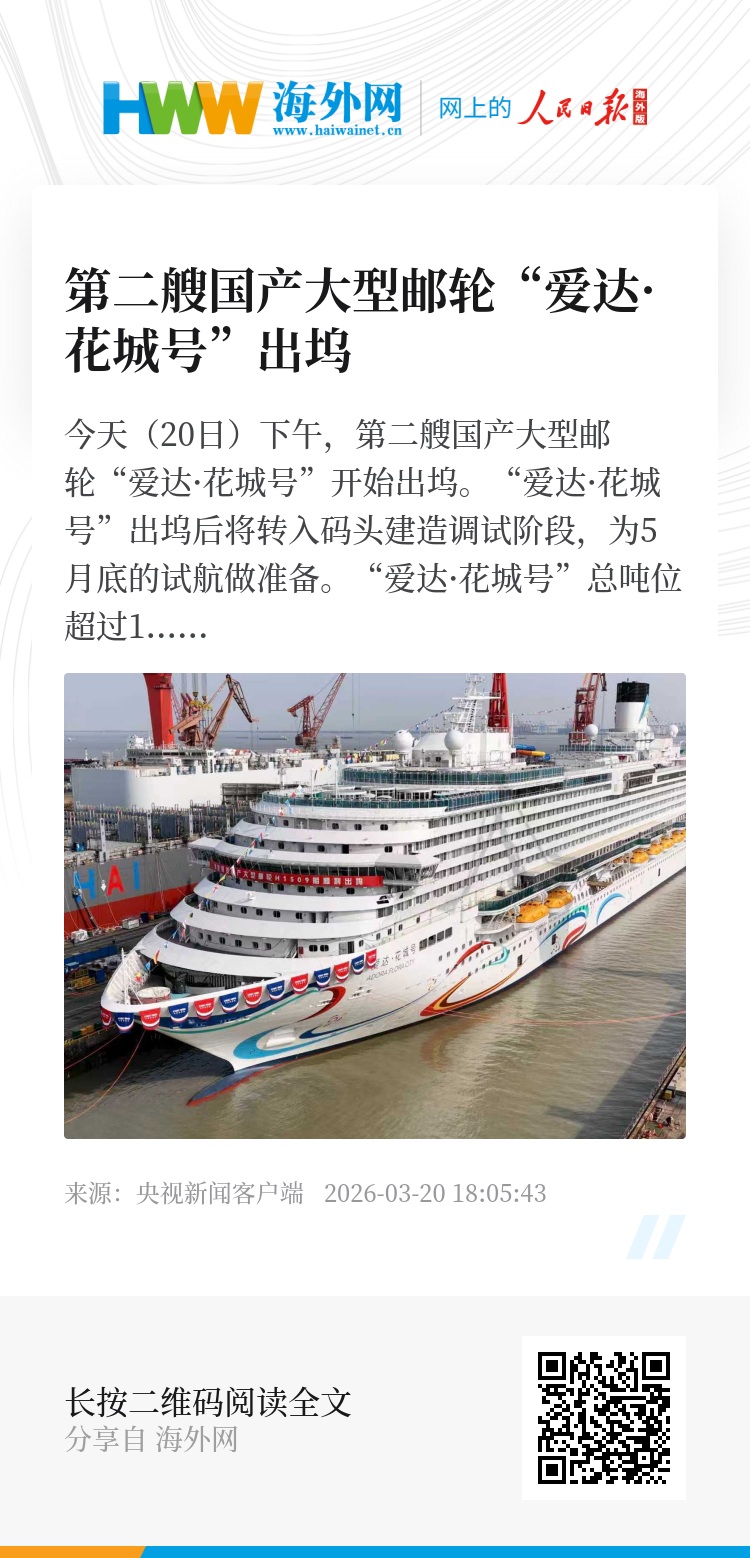 今天(20日)下午,第二艘国产大型邮轮“爱达·花城号”开始出坞。“爱达·花城号”出坞后将转入码头建造调试阶段,为5月底的试航做准备。