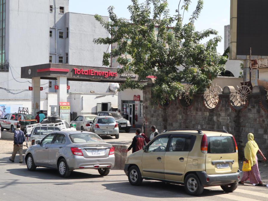 3月17日,在埃塞俄比亚首都亚的斯亚贝巴,车辆在加油站外排队等待加油。新华社记者刘方强摄
