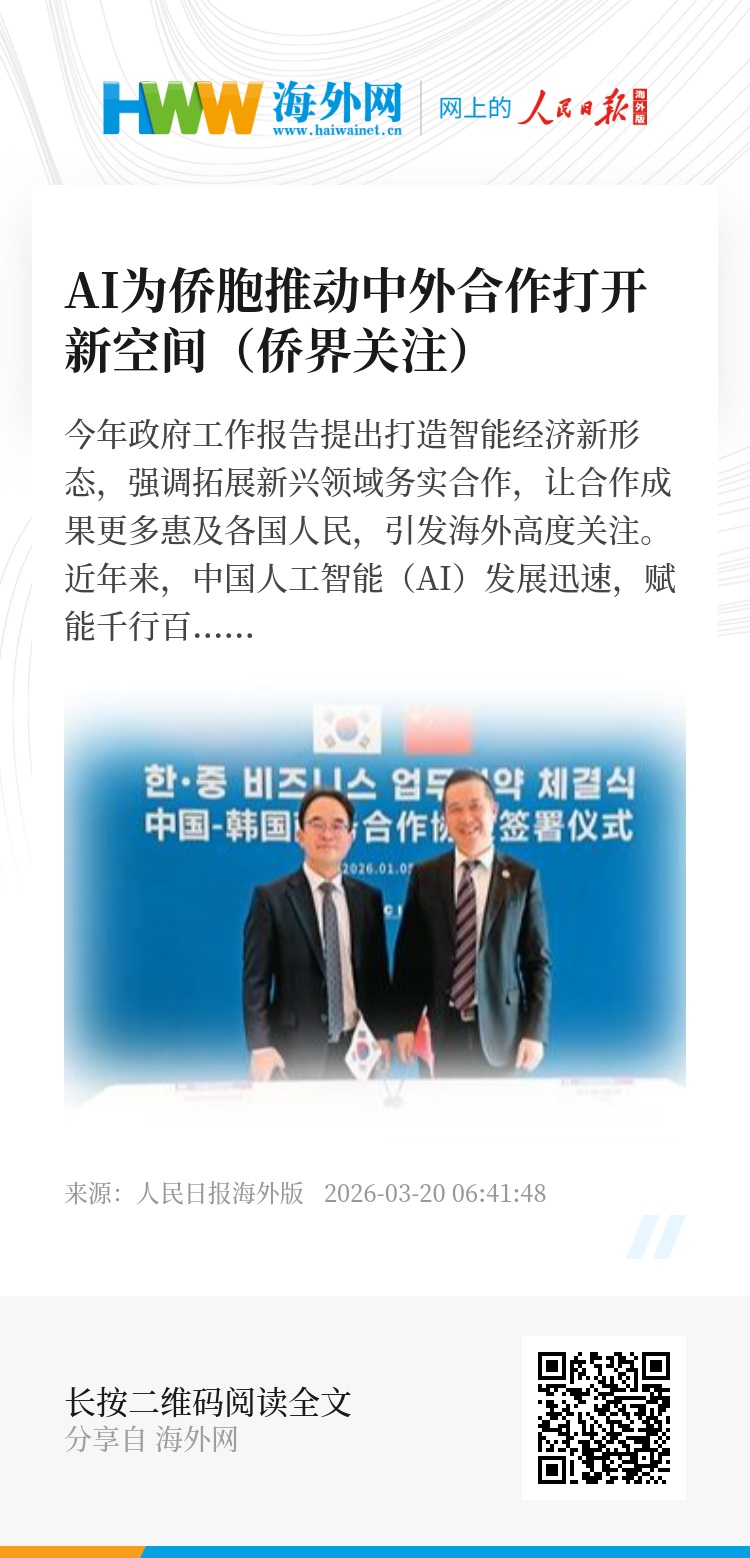 今年政府工作报告提出打造智能经济新形态,强调拓展新兴领域务实合作,让合作成果更多惠及各国人民,引发海外高度关注。近年来,中国人工智能(AI)发展迅速,赋能千行百业。与此同时,中国AI技术走向海外,成为中外科技合作的新亮点。华侨华人活跃其中,他们积极引进技术、搭建平台,为中外合作打开了广阔新空间。