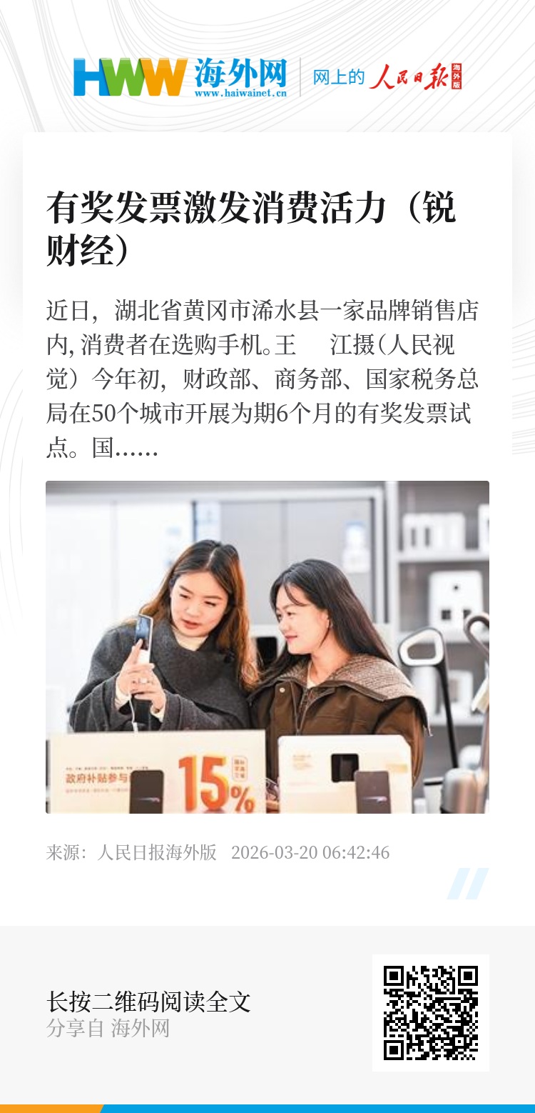 有奖发票活动还与“以旧换新”补贴、消费券发放、文旅惠民活动等多项措施形成合力。在广东,广州市民陈先生不久前购买手机时,同时享受了“以旧换新”补贴和发票抽奖双重优惠。“这张发票让我中了100元奖金,相当于折上折。”陈先生说。