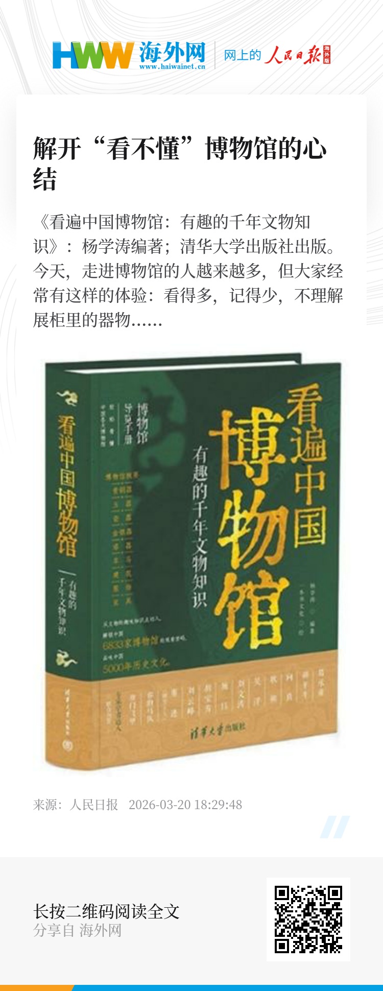 《看遍中国博物馆:有趣的千年文物知识》:杨学涛编著;清华大学出版社出版。