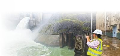 厂房内,4台发电机组高速运转。在大坝山体的另一侧,大片的光伏面板在阳光下闪着银光。中核集团云南龙江水利枢纽开发有限公司总经理阎俊介绍,目前龙江水利枢纽机组总装机容量为27.8万千瓦,采取“水光互补”,每年向电网输送约8亿千瓦时的绿色电力。