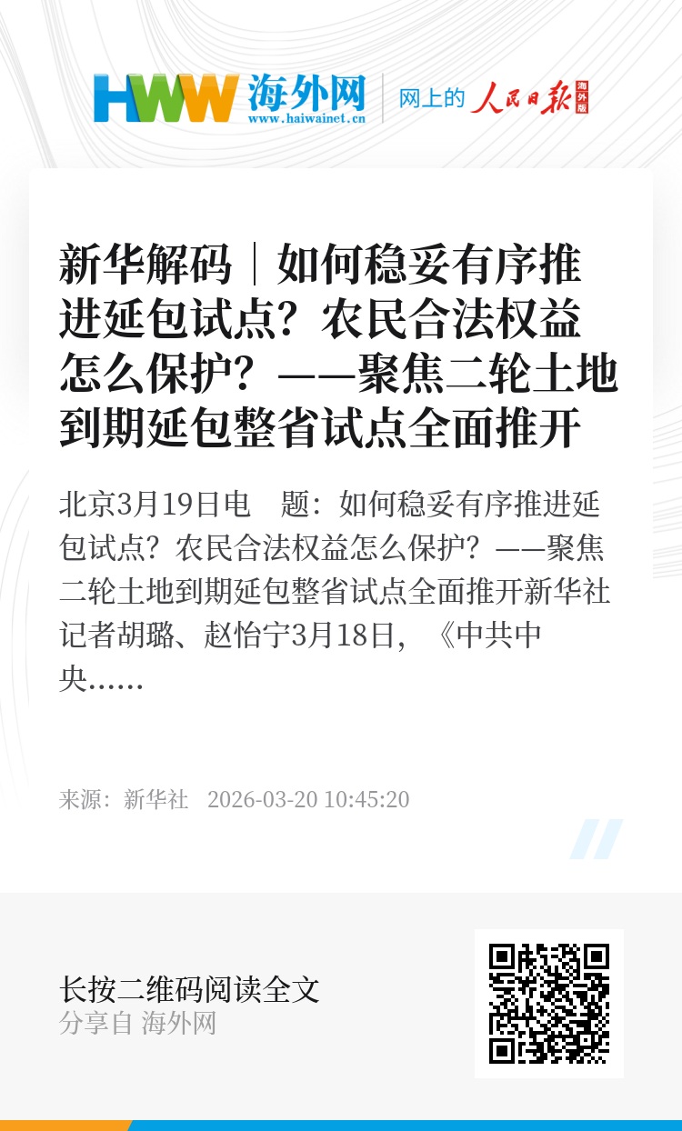 新华社北京3月19日电 题:如何稳妥有序推进延包试点?农民合法权益怎么保护?——聚焦二轮土地到期延包整省试点全面推开