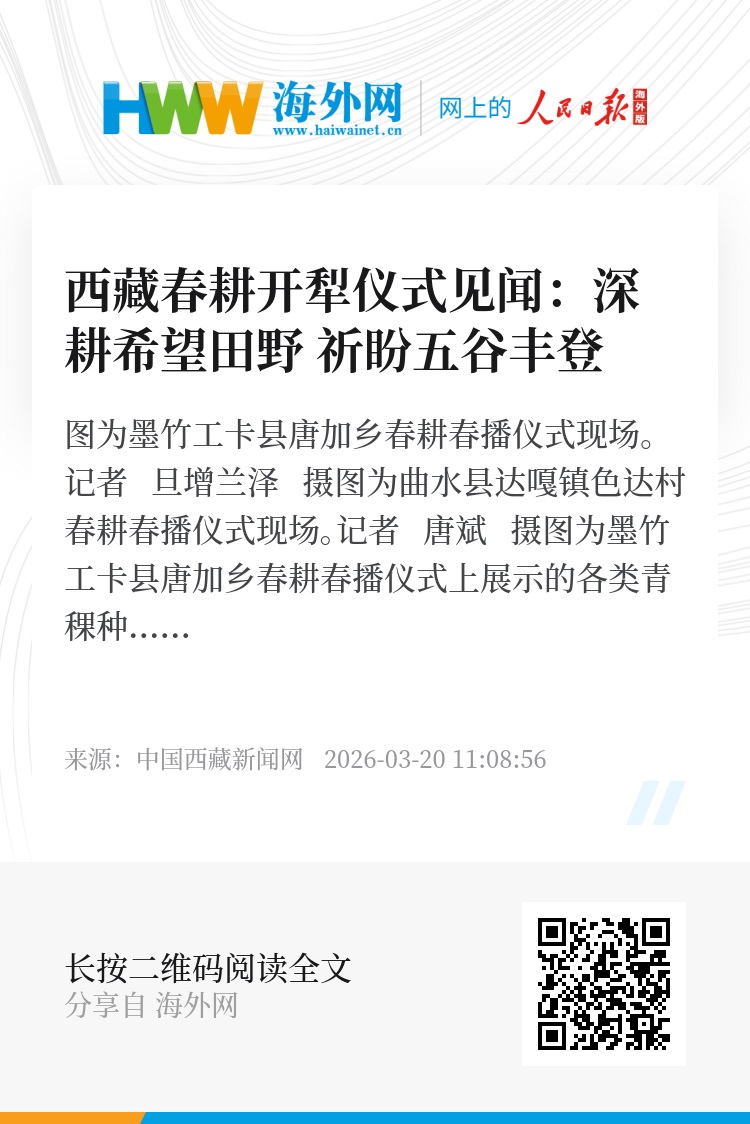 从传统礼俗到现代耕作,西藏春耕春播早已超越农事本身,成为展现高原农牧业发展的生动缩影。如今,机械化耕作、良种选育、科学种养等现代农业技术广泛普及,古老农耕文化在传承中焕发新生机。传统与现代共生,耕耘与希望同行,西藏农牧民正以勤劳的双手,深耕希望田野,奏响乡村振兴的奋进乐章,奔赴五谷丰登、幸福安康的美好新程。