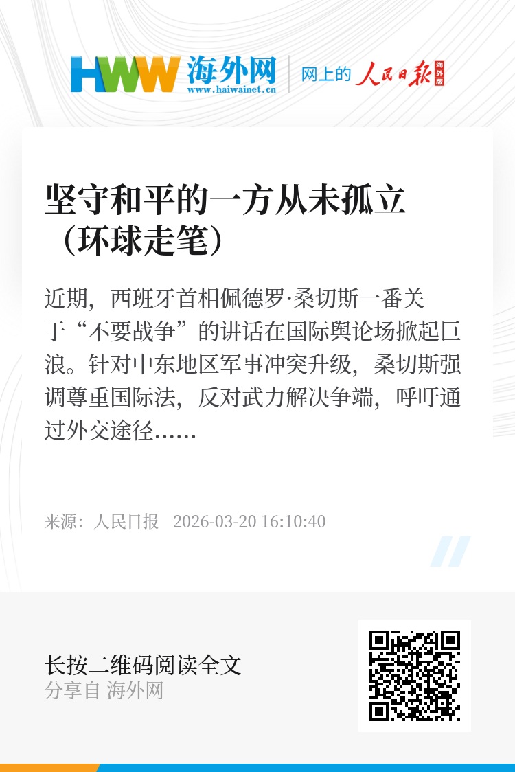 再回看桑切斯那句“并不孤立”,不难理解其中的意味。坚守和平的一方,从未真正孤立。(颜 欢)