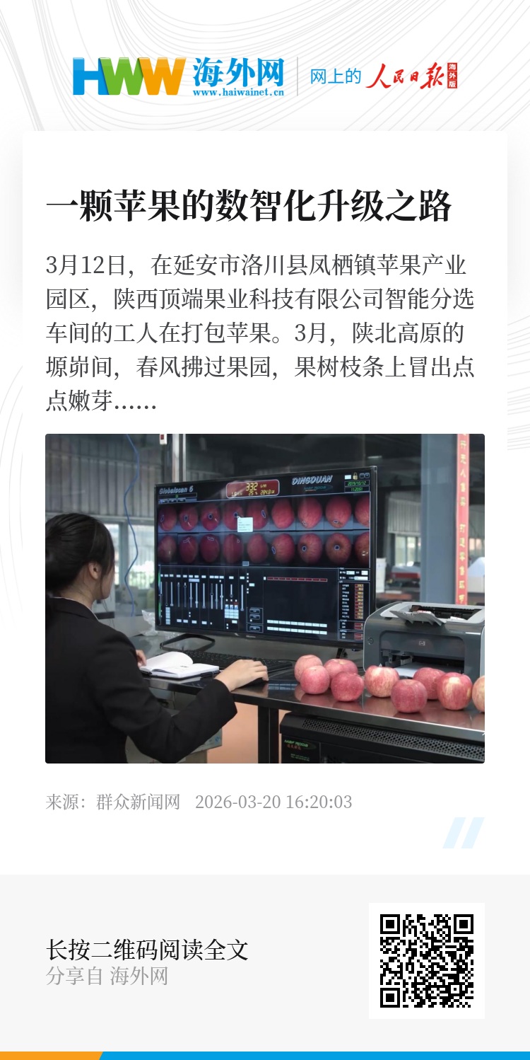 从靠经验种果到靠数据管果,从人工分拣到给苹果拍“CT”,从手工记账到一部手机管冷库,数智化正让陕西苹果拥有属于自己的“数字基因”。