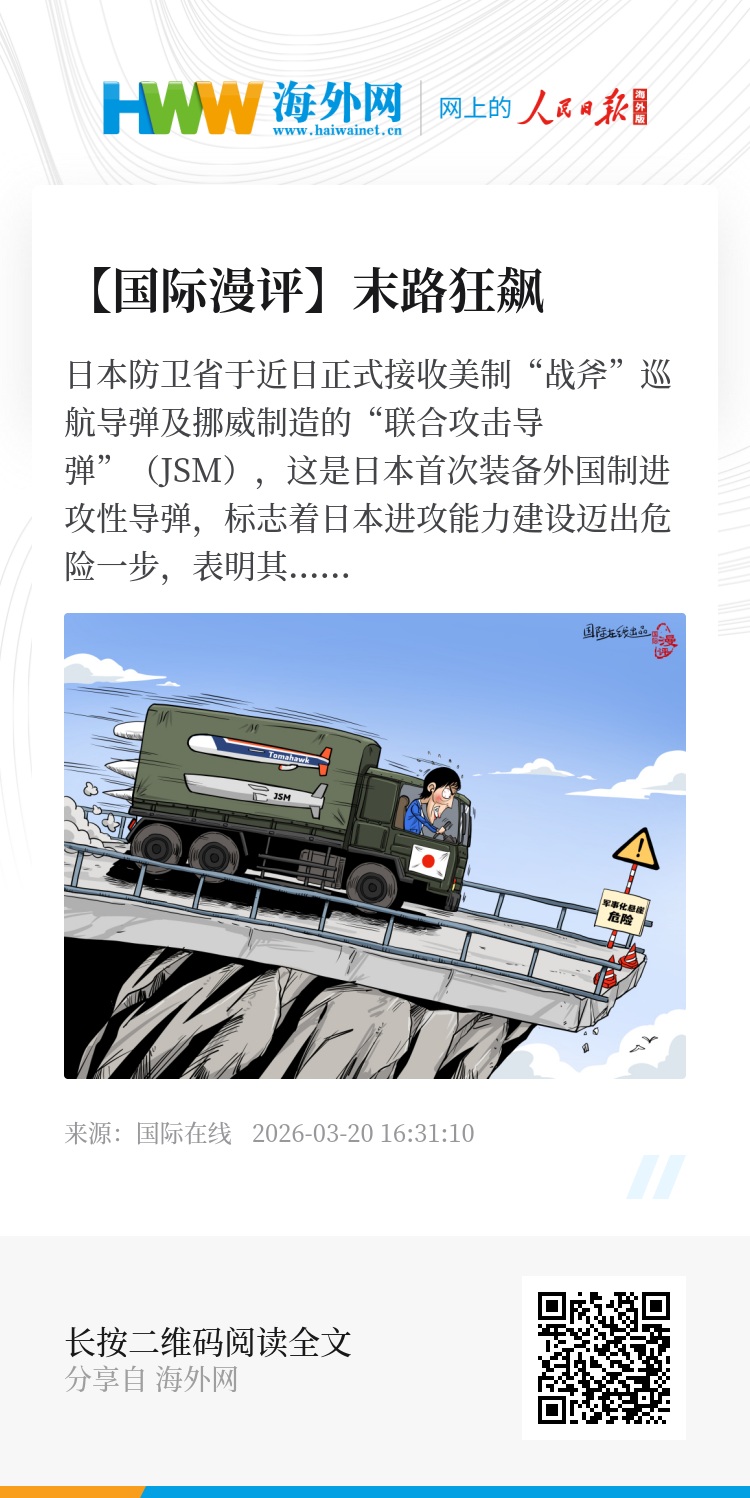日本防卫省于近日正式接收美制“战斧”巡航导弹及挪威制造的“联合攻击导弹”(JSM),这是日本首次装备外国制进攻性导弹,标志着日本进攻能力建设迈出危险一步,表明其在“再军事化”的末路上一路狂飙。