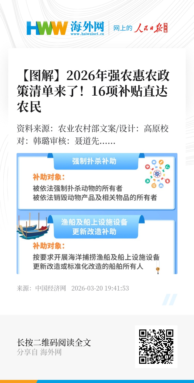 【图解】2026年强农惠农政策清单来了!16项补贴直达农民