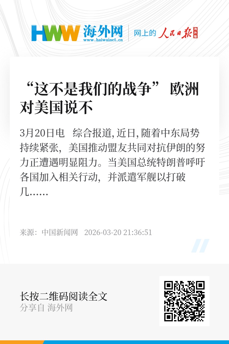 在中东局势与跨大西洋关系双重压力之下,欧洲正一边对特朗普说“不”,避免被卷入冲突,一边寻求以更独立的方式维护自身安全与利益。“这不是我们的战争”,不仅是当下的政策表态,也折射出欧洲对美态度的微妙转变。