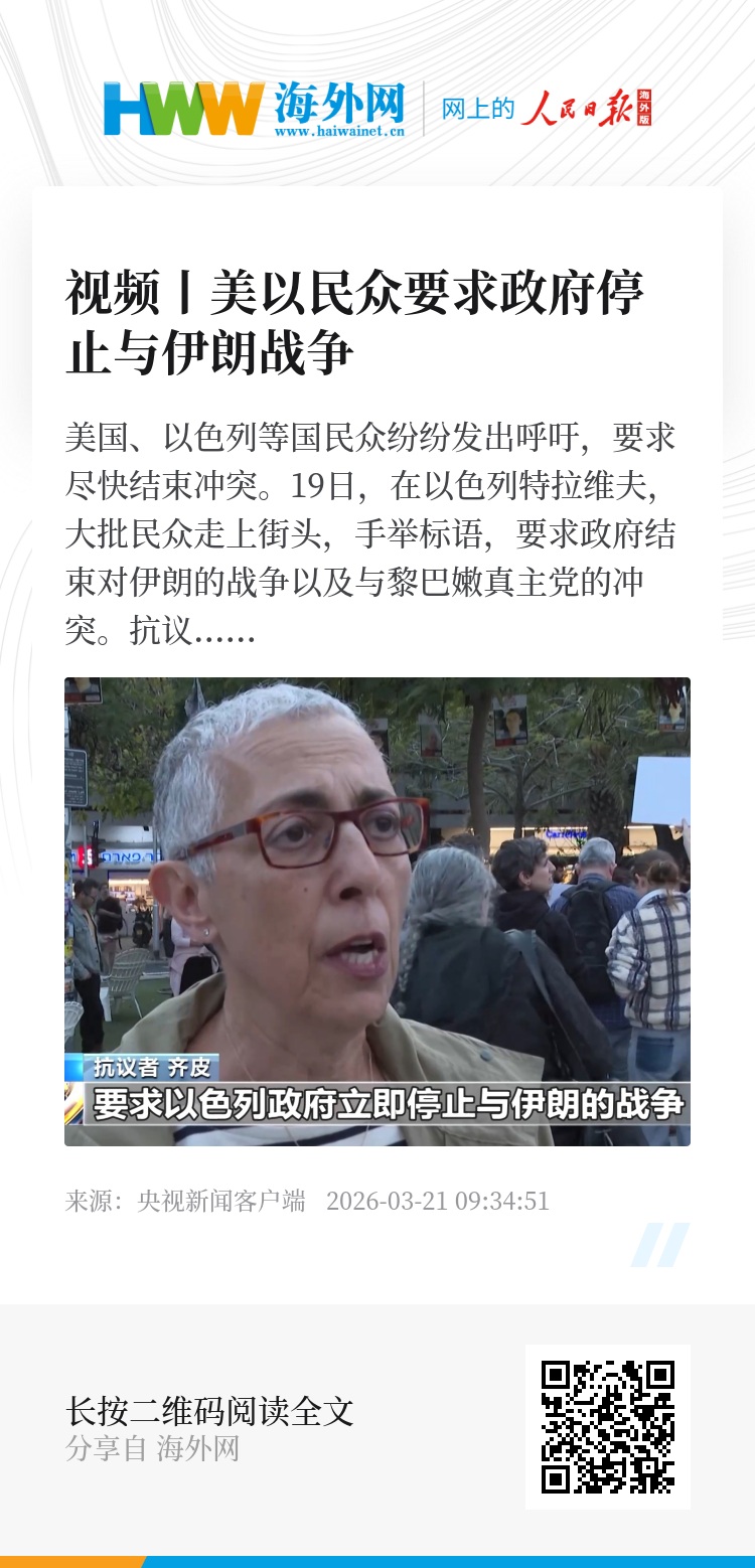 美国、以色列等国民众纷纷发出呼吁,要求尽快结束冲突。19日,在以色列特拉维夫,大批民众走上街头,手举标语,要求政府结束对伊朗的战争以及与黎巴嫩真主党的冲突。