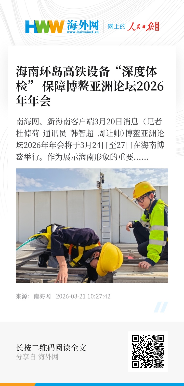 南海网、新海南客户端3月20日消息(记者 杜倬荷 通讯员 韩智超 周让帅)博鳌亚洲论坛2026年年会将于3月24日至27日在海南博鳌举行。作为展示海南形象的重要窗口,海南环岛高铁沿线各站正以崭新面貌迎接八方来客。海南铁路海口房建公寓段于3月上旬对管内32个车站的房建设备进行了全覆盖排查整治,目前各项整治工作已全面达标,设备运行平稳,站区面貌焕然一新。