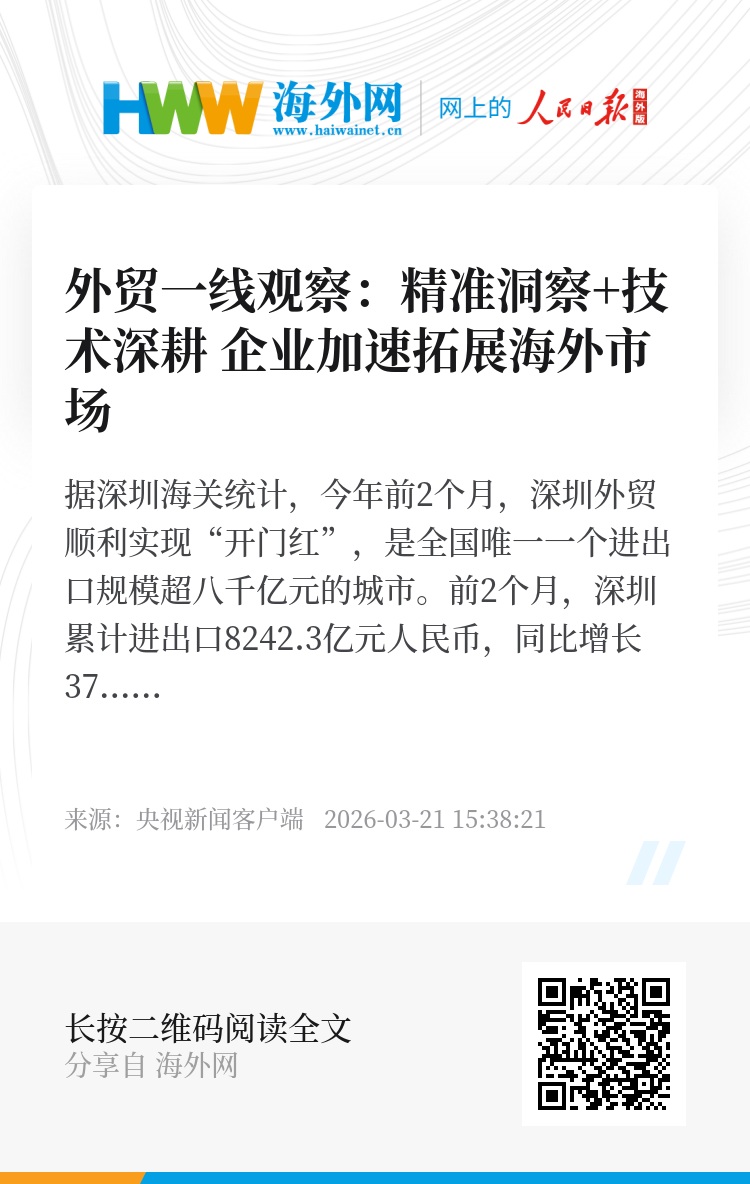 深圳海关所属观澜海关企业认证科三级主办 廖青青:我们海关加大高级认证企业的培育力度,支持企业降低通关成本,提升国际竞争力。前2个月,深圳市有进出口记录的民营企业4.12万家,外贸值占同期全市外贸总值超七成,数量和规模均居全国内地城市首位。