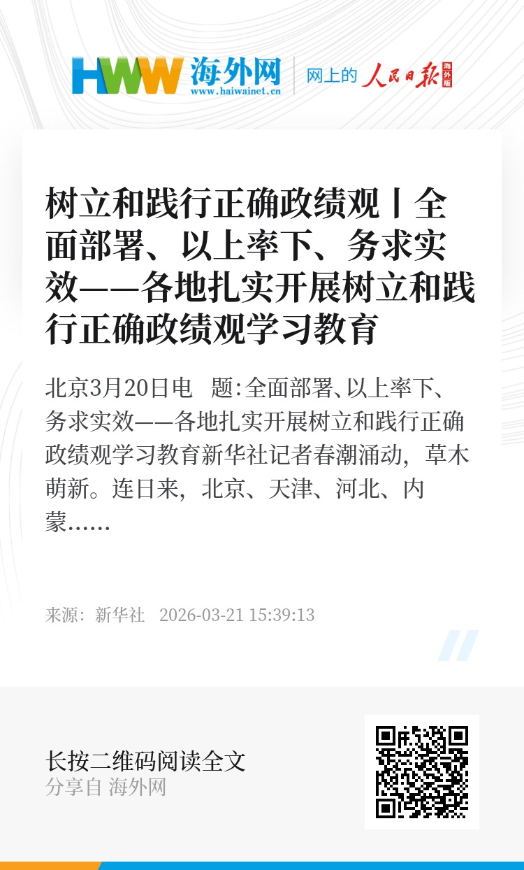 新华社北京3月20日电 题:全面部署、以上率下、务求实效——各地扎实开展树立和践行正确政绩观学习教育
