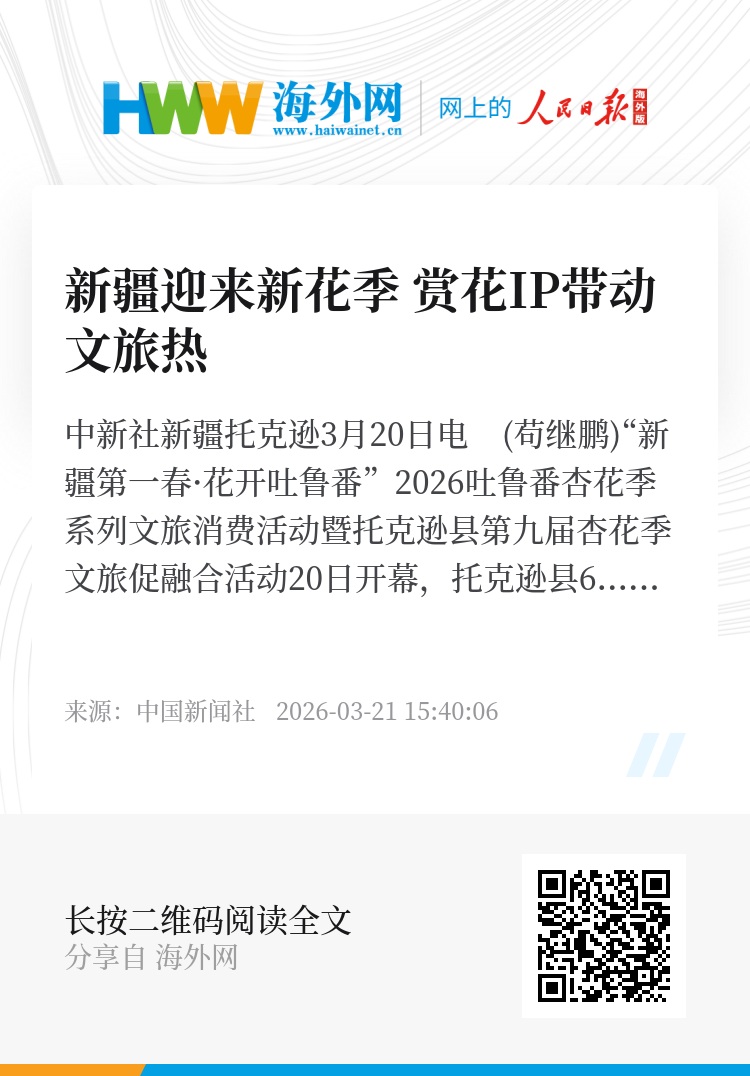 “经过多年深耕与创新,托克逊县杏花季已从最初区域性、小规模的自发踏春活动,转变为享誉新疆内外的文旅招牌。”托克逊县委副书记、县长阿帕尔·尼牙孜说,今年杏花季将持续至4月10日,配套20多项文旅活动,突破单一赏花观光模式,向“花事+”多元融合迈进,力求变“流量”为“留量”。