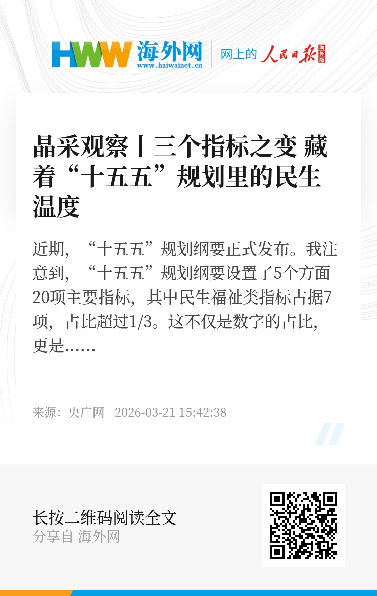我注意到,“十五五”规划纲要设置了5个方面20项主要指标,其中民生福祉类指标占据7项,占比超过1/3。这不仅是数字的占比,更是一份饱含温度的民生清单。值得关注的是,相较于“十四五”规划,本次纲要中的多项民生福祉类指标,在延续性的基础上进行了优化与调整。