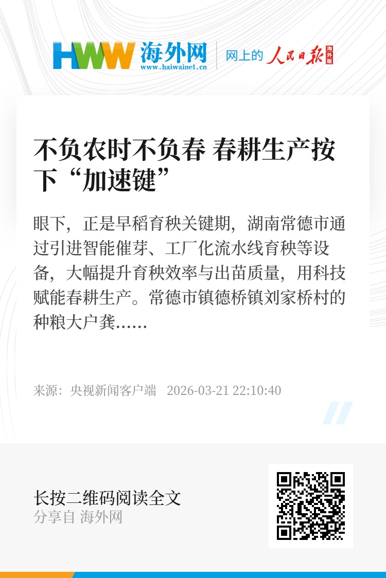 眼下,正是早稻育秧关键期,湖南常德市通过引进智能催芽、工厂化流水线育秧等设备,大幅提升育秧效率与出苗质量,用科技赋能春耕生产。