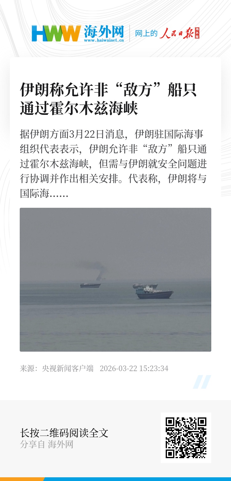 据伊朗方面3月22日消息,伊朗驻国际海事组织代表表示,伊朗允许非“敌方”船只通过霍尔木兹海峡,但需与伊朗就安全问题进行协调并作出相关安排。