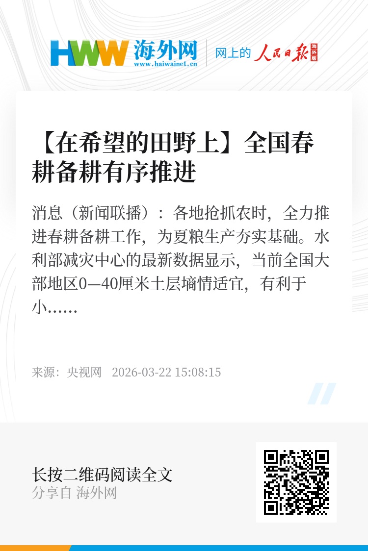 央视网消息(新闻联播):各地抢抓农时,全力推进春耕备耕工作,为夏粮生产夯实基础。