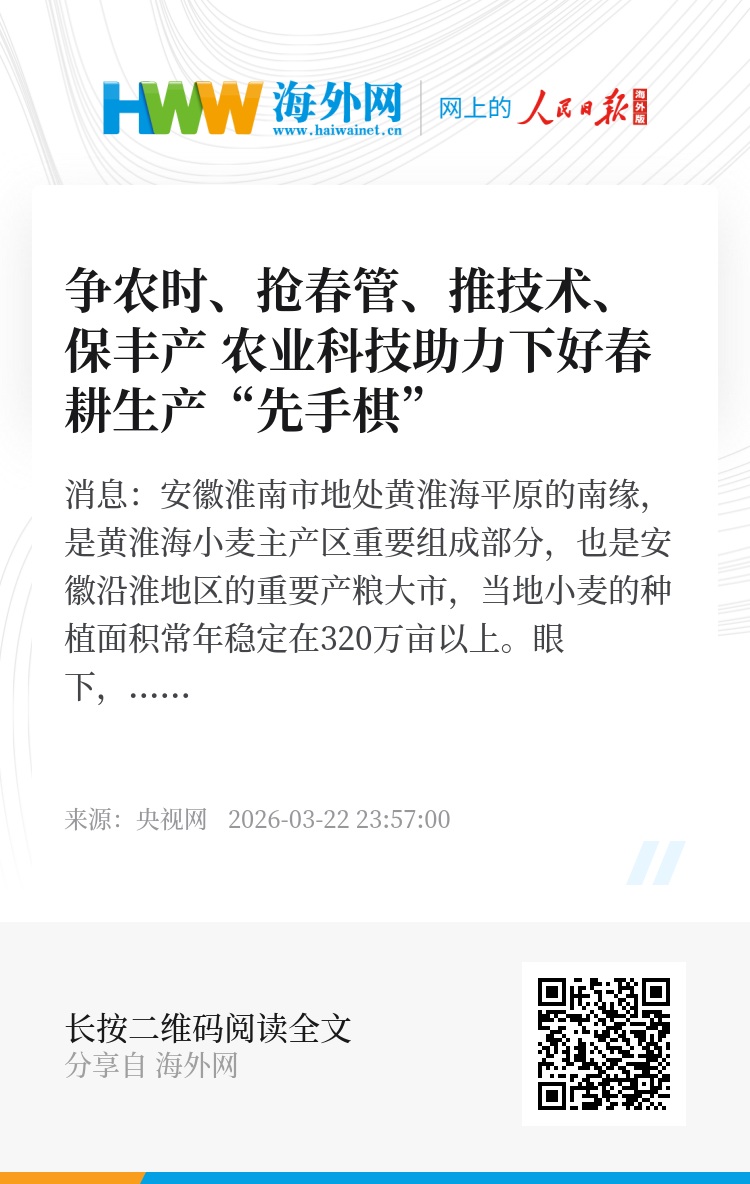 总台记者来到淮南农场的小麦地里,春分刚过,满眼青翠是这里的主色调。在一眼望不到边的翠绿里,直观感受到了属于春天里的勃勃生机和希望。22日,这儿的最高气温达到了20摄氏度,天气回暖对小麦生长和拔节抽穗来说是个好事情。