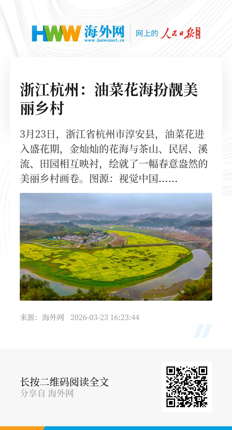 32939977,.浙江杭州:油菜花海扮靓美丽乡村,.2026-03-23 16:23:44,.204589,.黄之安、侯兴川