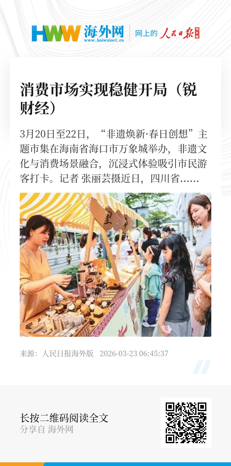 3月20日至22日,“非遗焕新·春日创想”主题市集在海南省海口市万象城举办,非遗文化与消费场景融合,沉浸式体验吸引市民游客打卡。新华社记者 张丽芸摄