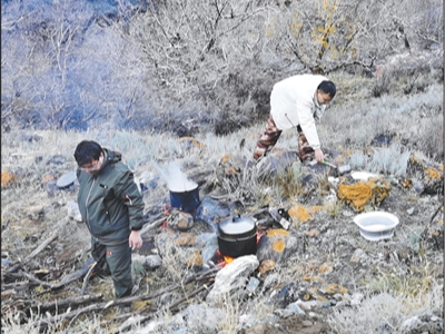 山里的低温不仅人受不了,仪器也受不了。“在‘老虎口’的7天6夜,测绘仪都被冻得无法工作了,我们把仪器抱在怀里让它回温后再进行测绘。地面冻得硬邦邦,数据基准点都得用冰镐凿。”公维强说。