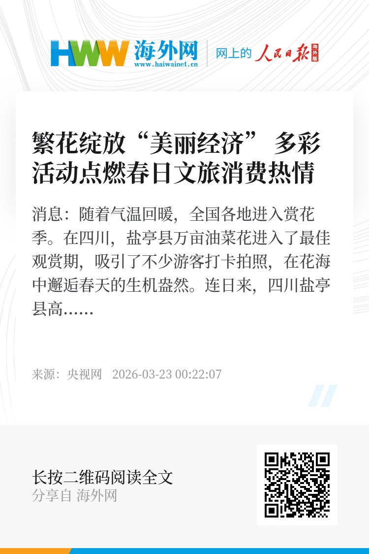 据介绍,当地正探索“农业+旅游”融合发展模式,将单一的“赏花游”升级为沉浸式“体验游”。盐亭县高渠镇党委书记赵伟表示,今年创新形式就是希望把“流量”真正转变为“留量”,让游客从“匆匆来、匆匆走”变成“慢慢看、愿意买”。