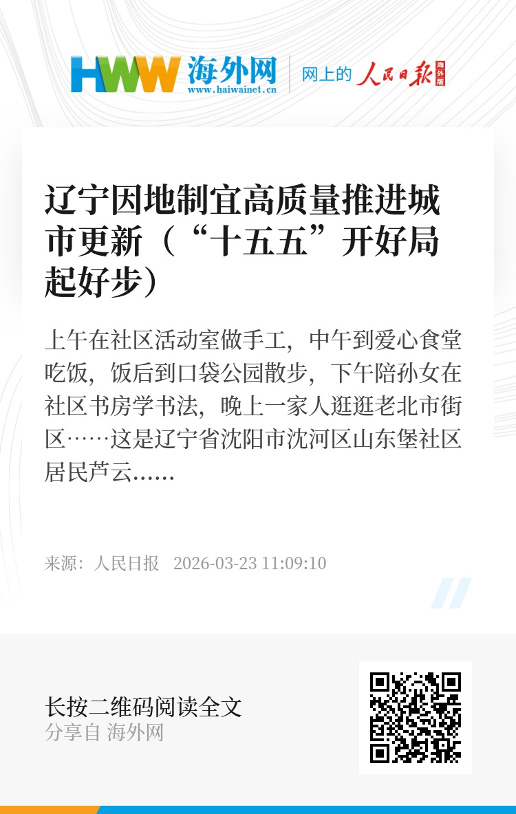 从改造老旧小区到建设口袋公园,从修复历史街区到建设完整社区,居民生活的点滴变化,记录着辽宁推进城市更新的脚步。