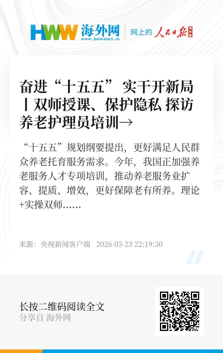 “十五五”规划纲要提出,更好满足人民群众养老托育服务需求。今年,我国正加强养老服务人才专项培训,推动养老服务业扩容、提质、增效,更好保障老有所养。