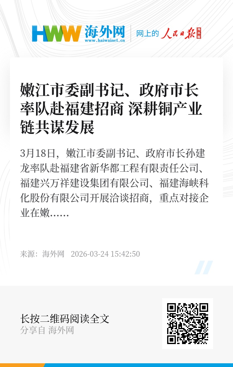 3月18日,嫩江市委副书记、政府市长孙建龙率队赴福建省新华都工程有限责任公司、福建兴万祥建设集团有限公司、福建海峡科化股份有限公司开展洽谈招商,重点对接企业在嫩江发展事宜,围绕铜产业及配套领域,为嫩江经济社会发展提供动力支持。