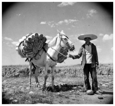 摄影集《大卫·柯鲁克镜头里的中国:1938—1948》中收录的一幅作品,呈现了当时用马匹运输晋冀鲁豫人民日报的场景。