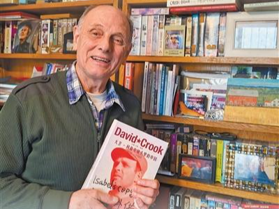 柯马凯展示父亲的摄影集《大卫·柯鲁克镜头里的中国:1938—1948》。