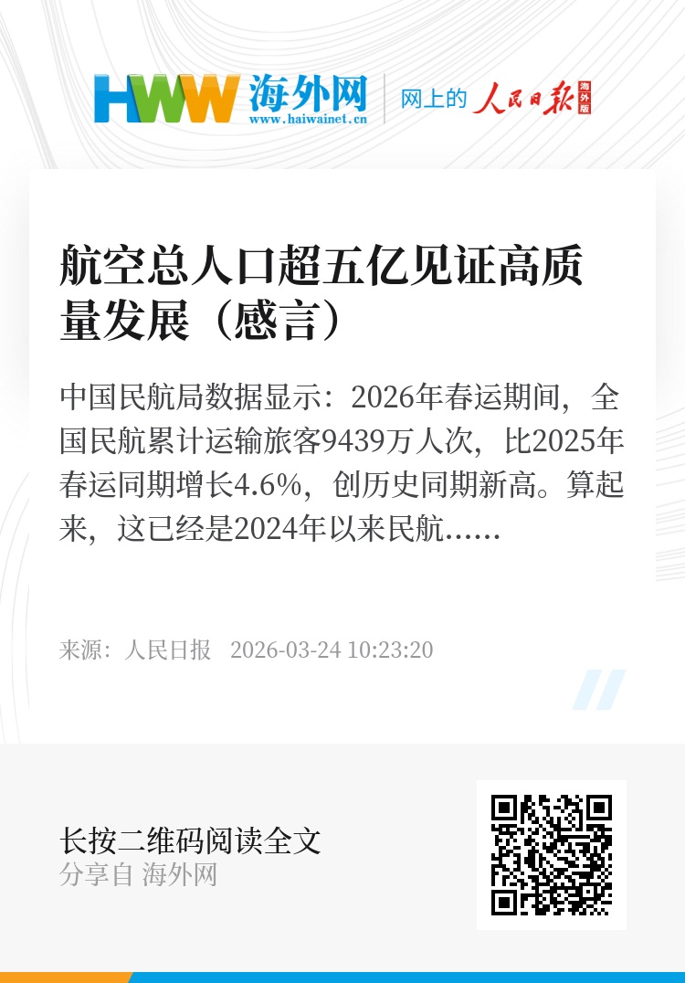 增长的民航客流里,有一条数据引人注目:截至2025年,我国航空总人口超5亿,成为全球第一航空人口大国。