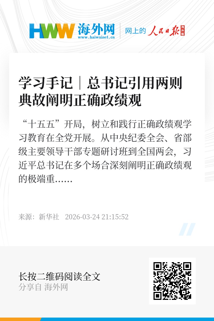 “十五五”开局,树立和践行正确政绩观学习教育在全党开展。从中央纪委全会、省部级主要领导干部专题研讨班到全国两会,习近平总书记在多个场合深刻阐明正确政绩观的极端重要性,对“从个人或小团体利益出发”“心浮气躁”“急功近利”等错误政绩观提出批评,为干事创业立起标杆、划清底线。谆谆教诲,令人不由想起总书记多次提及的两则典故——