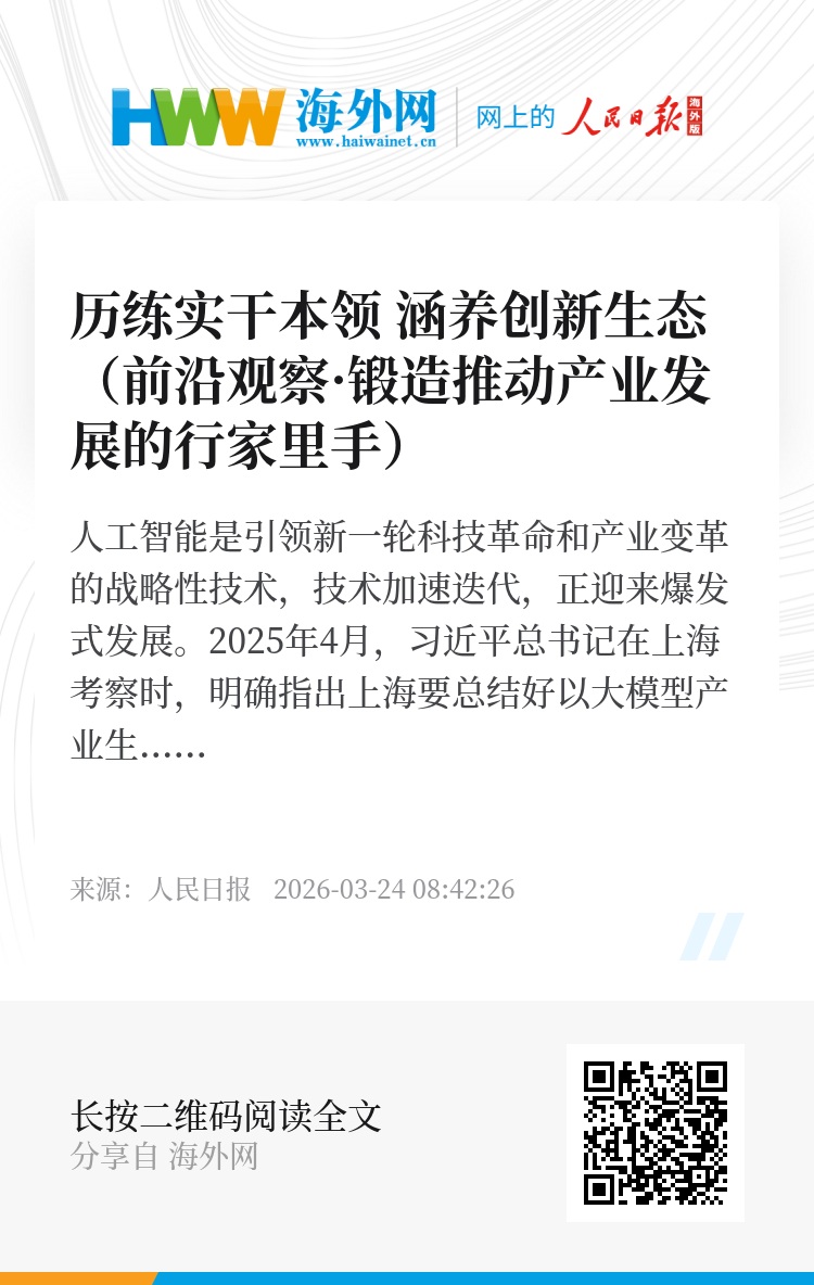 2025年4月,习近平总书记在上海考察时,明确指出上海要总结好以大模型产业生态体系孵化人工智能产业等成功经验,加大探索力度,力争在人工智能发展和治理各方面走在前列,产生示范效应。