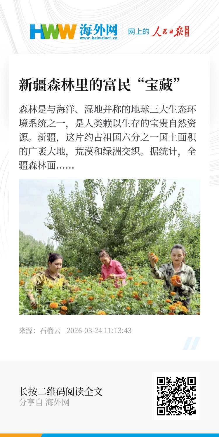 从“黄沙漫天”到“果香满园”,从林下种养殖到森林碳汇创富,新疆用实践印证了“绿水青山就是金山银山”的深刻内涵——森林与经济可以同频共振,既是守护生态的屏障,更是滋养民生的沃土。这条生态优先、绿色发展之路,正在广袤的新疆大地上越走越宽广。(石榴云/新疆日报记者 曹华)