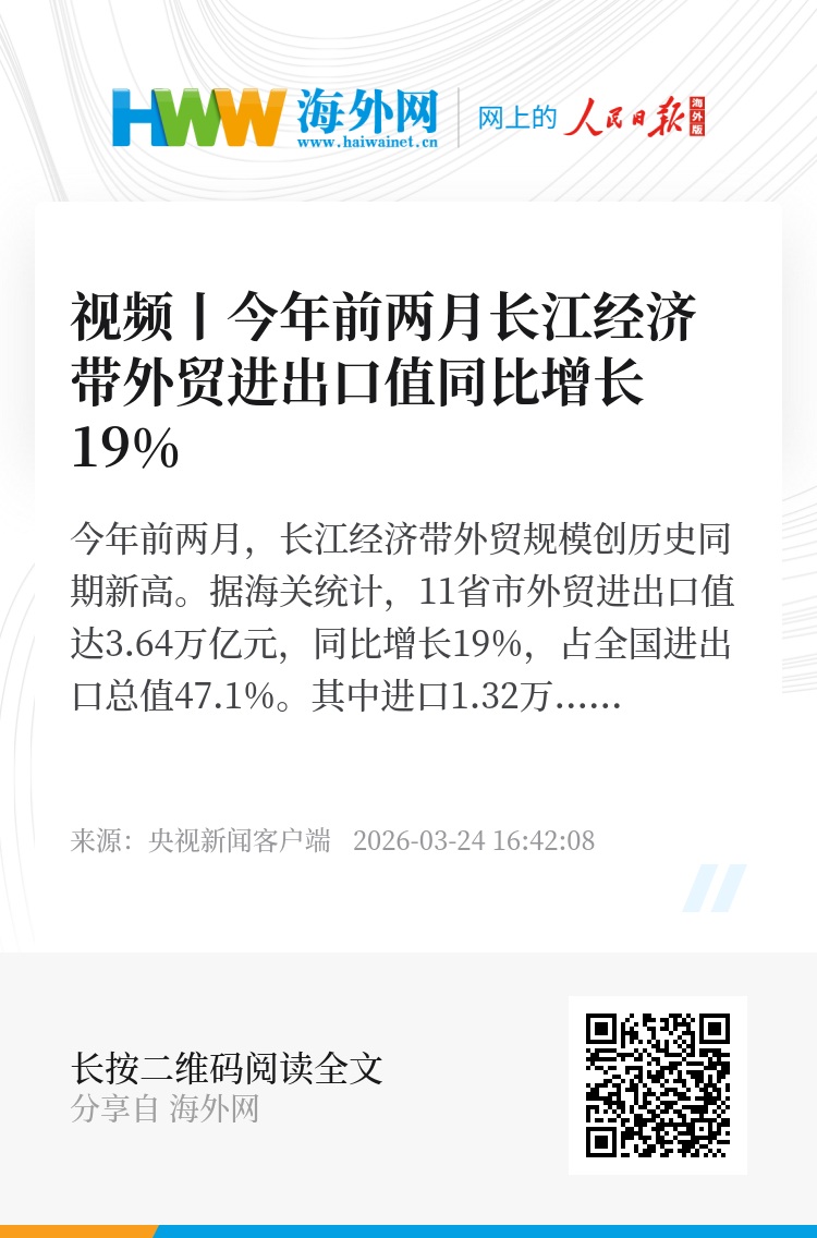 今年前两月,长江经济带外贸规模创历史同期新高。据海关统计,11省市外贸进出口值达3.64万亿元,同比增长19%,占全国进出口总值47.1%。其中进口1.32万亿元,出口2.32万亿元。
