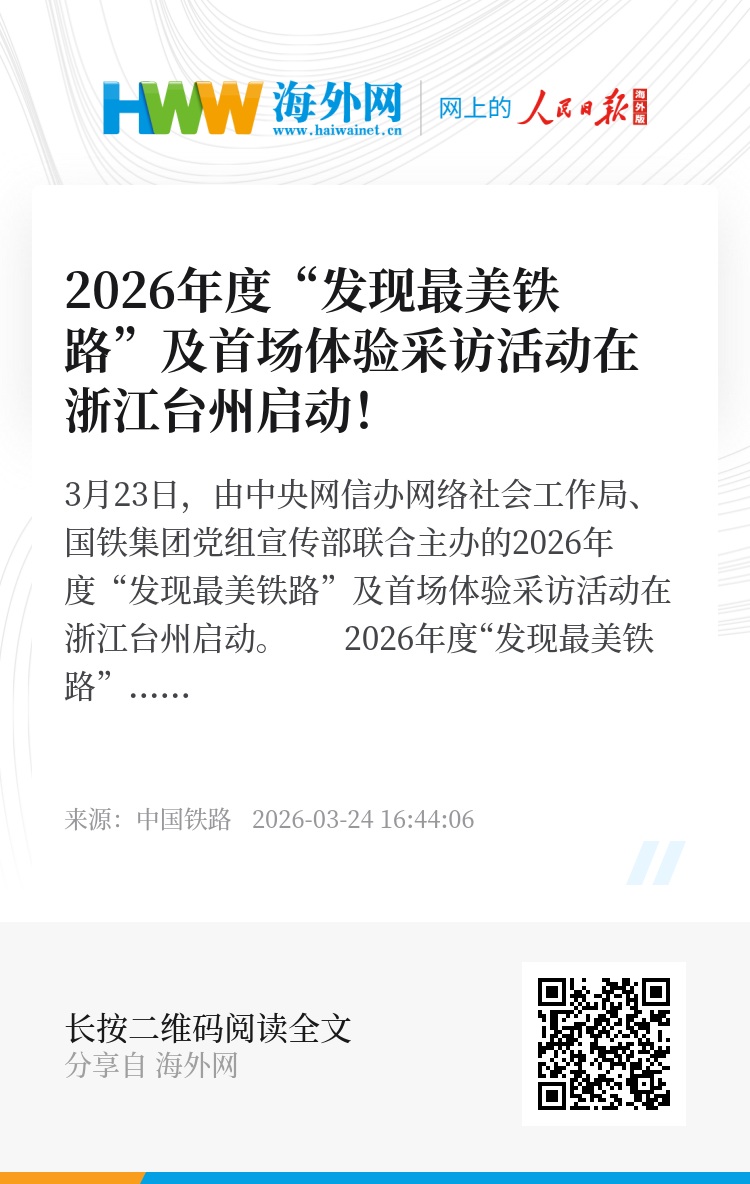 3月23日,由中央网信办网络社会工作局、国铁集团党组宣传部联合主办的2026年度“发现最美铁路”及首场体验采访活动在浙江台州启动。