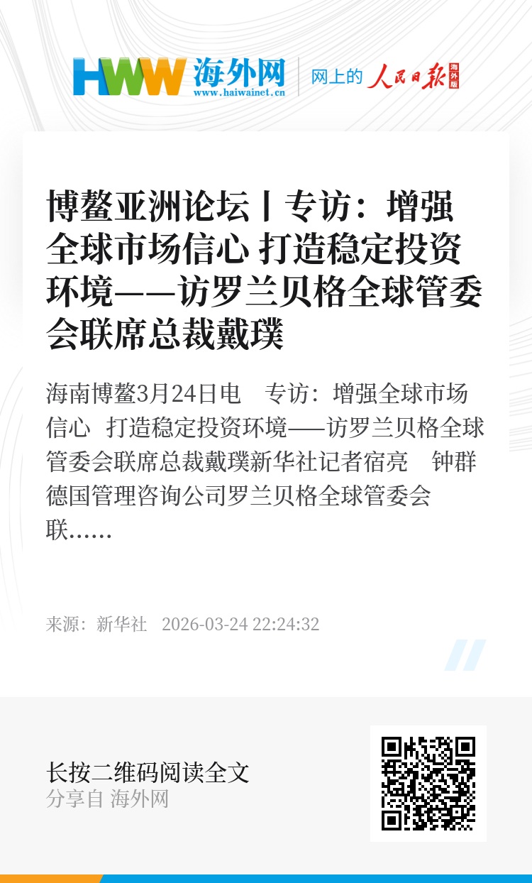 新华社海南博鳌3月24日电 专访:增强全球市场信心 打造稳定投资环境——访罗兰贝格全球管委会联席总裁戴璞