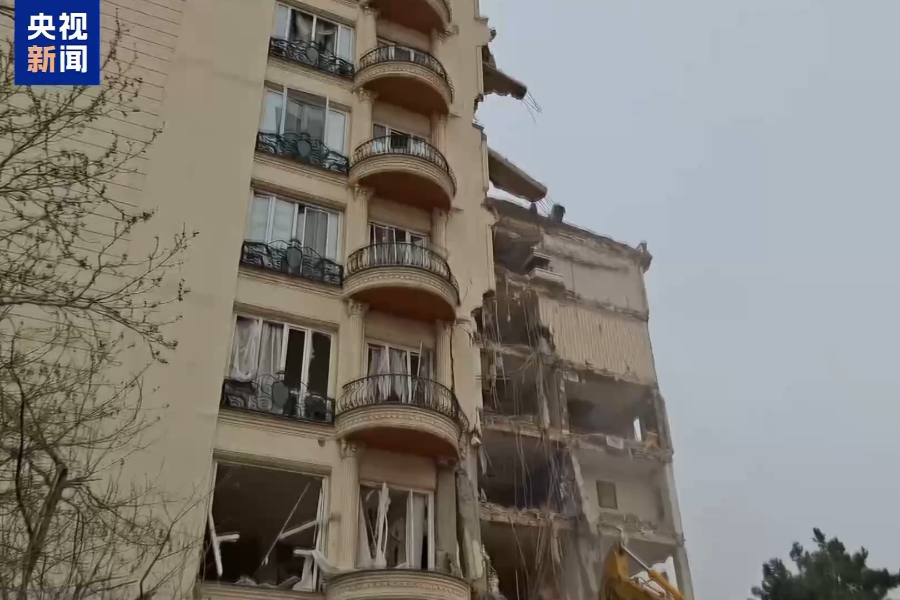 总台记者 李健南:23日下午,总台记者拍摄了其中一处遭袭场所。该地点位于德黑兰东北部地区的一个繁华区域。总台记者独家视频显示,这座8层居民楼楼体的一半被完全破坏,碎石和玻璃散落遍地。拍摄时,伊朗救援人员正在试图清理场地,营救被困人员。