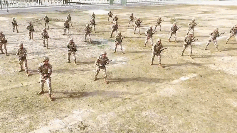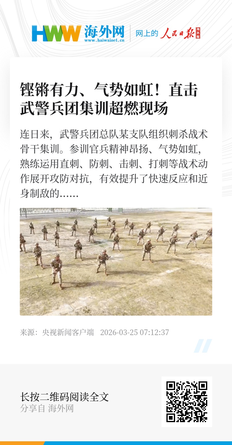 连日来,武警兵团总队某支队组织刺杀战术骨干集训。参训官兵精神昂扬、气势如虹,熟练运用直刺、防刺、击刺、打刺等战术动作展开攻防对抗,有效提升了快速反应和近身制敌的实战能力。(来源:中国军号)