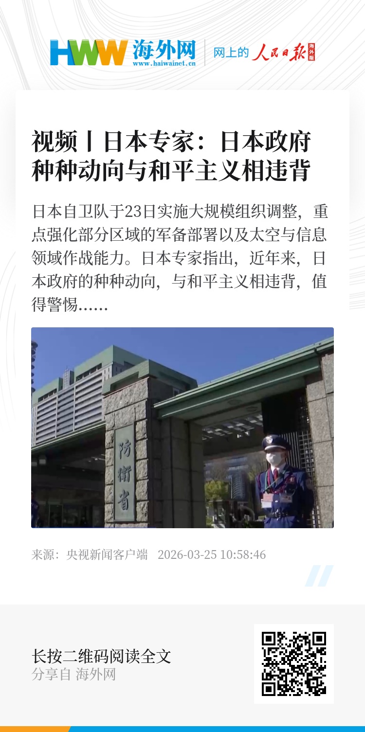 日本专家指出,近年来,日本政府的种种动向,与和平主义相违背,值得警惕。