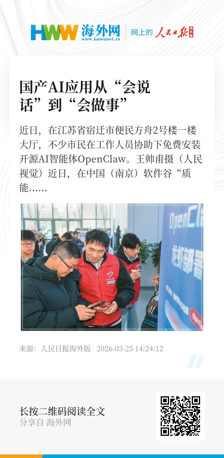 2026年的春天,国产AI正跨越从“会说话”到“会做事”的分水岭。这场由OpenClaw点燃的“龙虾”热潮,正在将人工智能从对话工具推向真正的生产力引擎。(记者 孙亚慧)
