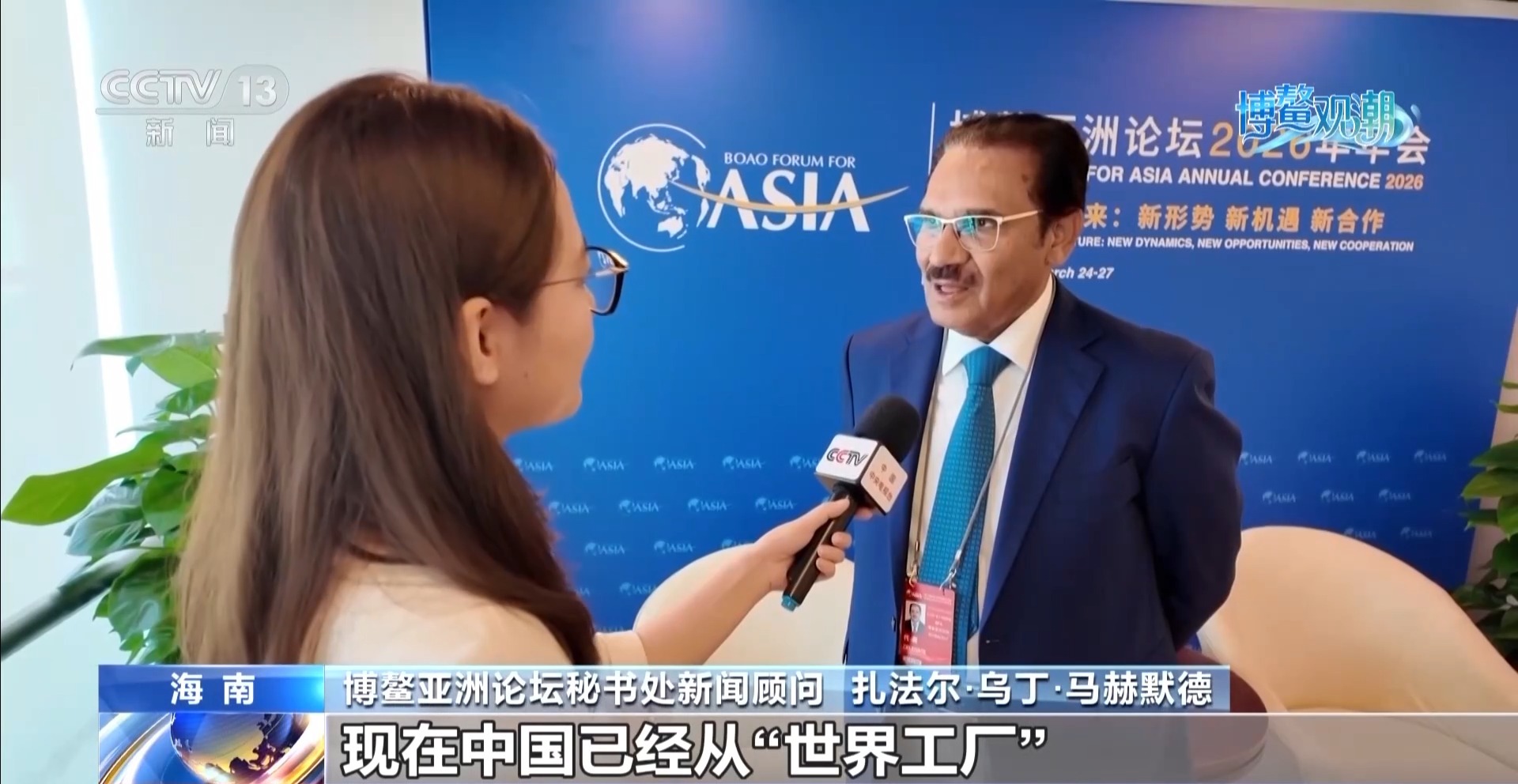 博鳌亚洲论坛秘书处新闻顾问 扎法尔·乌丁·马赫默德:现在中国已经从“世界工厂”转变为世界创新中心,可再生能源、绿色发展、人工智能等技术,中国都在引领世界,这些技术正在惠及全球更多国家。